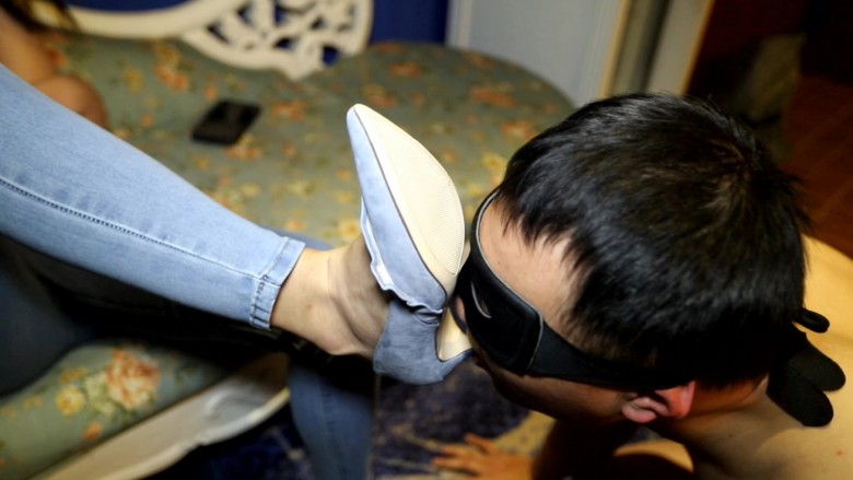 新来个小瘦奴,喵女神决定让这个贱货试试舔鞋底吸吮鞋跟,感觉这贱货有点呆,赏赐他点口水吐在鞋底,贱狗屁颠屁颠的伸出舌头去舔,随即就埃了一个大耳光,是用鞋抽的,贱狗立刻沙雕了。喵女神拿起高跟鞋命令贱狗伸出舌头,用鞋底在他的舌头上蹭。 然后女神伸出脚给贱狗闻闻脚趾缝的味道,这贱货又陶醉了,一顿大耳光教育,接着用脚左右开弓一顿抽,最后一脚踹脸上躺在地上,被女神踩在脚下。