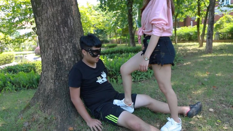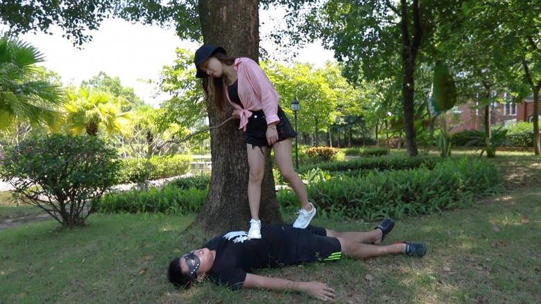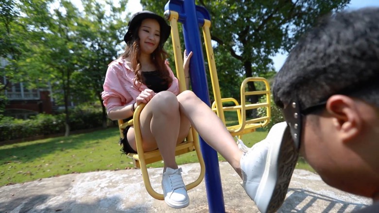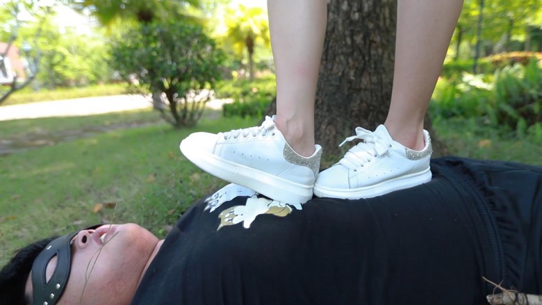 灵灵主子在户外的公园遛狗子,利用康乐设施玩弄奴隶。蹬踹脸,还有空翻跺踩!带着他遛了一圈,最后赏赐运动鞋棉袜脚里的“人间美味”~