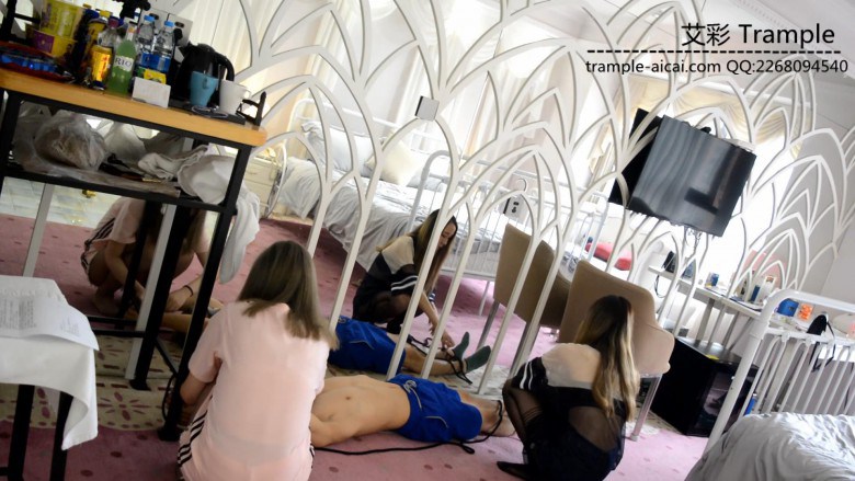 萱萱、欣欣双人全体重丝袜脚、穿鞋踩踏瘦奴,最后鞋跟还踩出了血