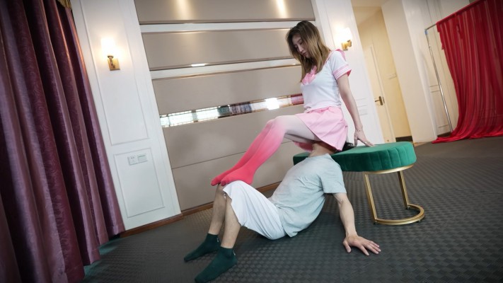 影姬穿着粉红套装,坐脸窒息调教。双腿蹬在m的膝盖上,屁股贴坐在脸上。然后抓着m的头发,用屁股一下下地顶撞m的脸。接着将m拖到地上,边坐脸边玩乳头,m慢慢晕了过去。影姬在晕倒的m身上脱下丝袜,用脱下来的丝袜缠在m的脖子上使劲勒,m翻出白眼,又晕了过去......