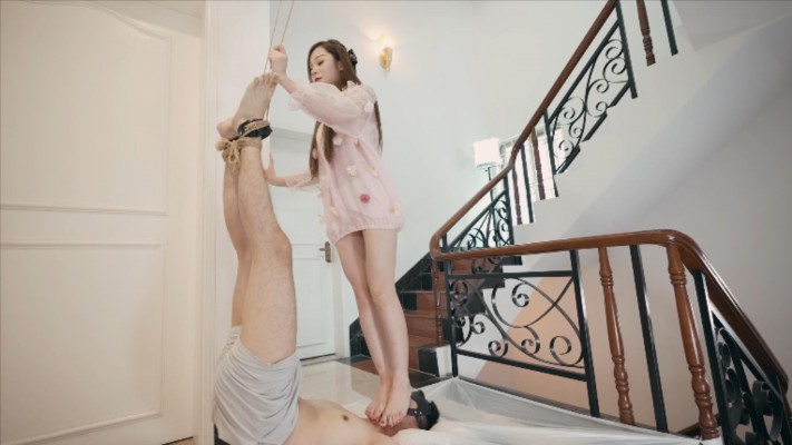 星奈主人灌着m喝了三大杯牛奶,接着m被倒吊起来。星奈全体重踩在他脸上。然后星奈缓缓将脚伸进m的嘴巴里,直抵喉咙,m刚刚喝下的牛奶刚到胃里还没来得及消化,就又从胃里喷吐了出来,喷得他自己一脸都是。