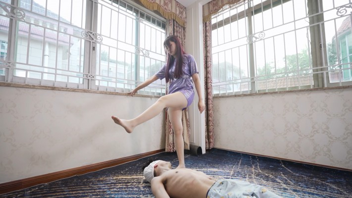 贱奴头顶着内裤,去接受樱崎的踢裆惩罚。一开始坐着踢觉得不过瘾,又站起来膝盖顶。贱奴支撑不住倒下了。但樱崎哪能就此放过他,于是换到床上继续虐踩裆部...