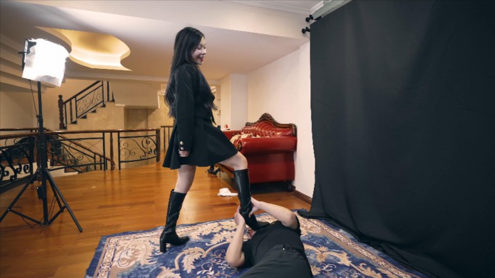 男子在路上看到星奈女神的长靴像着了魔一样跟着,后尾随星奈进入屋内偷闻靴子。结果这一幕被星奈拍了下来捉了个正着,男子不得不顺从地给星奈舔靴。而星奈趁此机会又拍了几张,男子慌忙想抢手机,却被星奈一脚踢翻。随即星奈残暴地踩废了他的双手双脚。男子这才发现星奈根本没打算放过自己。星奈大笑着站在男子身上乱踩乱踢,十分陶醉,最后用双腿腿绞令男子窒息而亡。