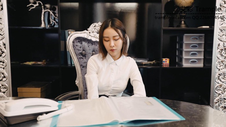 剧情:男下属做错方案给客户,女上司作为主管要承担主要责任,生气责罚下属内容:几个大耳光扇得下属不知所措,夏芙扬言要开除他并要他赔偿一大笔钱。下属吓得赶紧扑通下跪道歉,夏芙还是不解气,把他的头按在桌子上生气地连续扇耳光。把下属辛苦做的方案摔到地上碾踩,下属用手去护着,却被毫不留情得连手一起跺踩,下属抱着夏芙的大腿恳求,夏芙一脚把他踹开,下属死不放手。夏芙见状一脚把他的脸踩到地上不断碾踩、跺,继续出气,并使劲跺踩他,自言自语地发泄着,夏芙随手拿起书本打屁股,把书也打烂了,又拿来了鞭子继续打...夏芙见