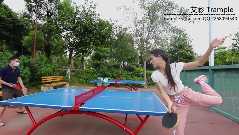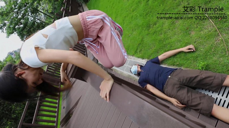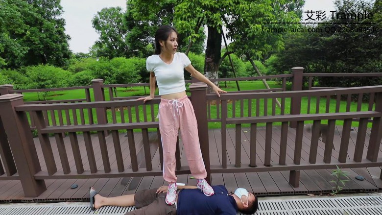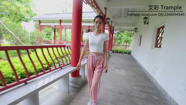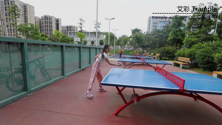 芷晴走路、打乒乓球后,白袜运动鞋出了很多脚汗,带着浓烈的味道在公园里展开调教。