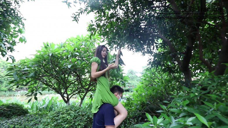 在公园的园林里,芷晴戏耍起她的小奴。自己骑车让小奴跟在后面追着跑;把鲜花插在他的头上羞辱拍照,又骑着他脖子去摘果子;看到一口水井坏坏地让小奴洗脚,却坐在他身上,把他的头踩进水里、让他舔脚...还有欺负小奴生吃花朵等,随意的调教...
