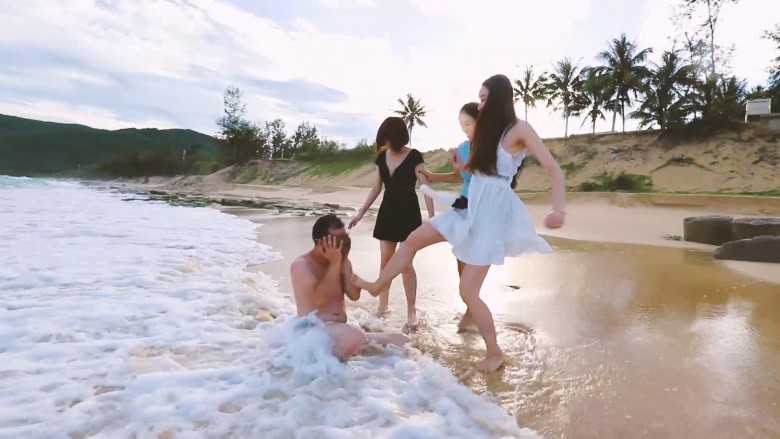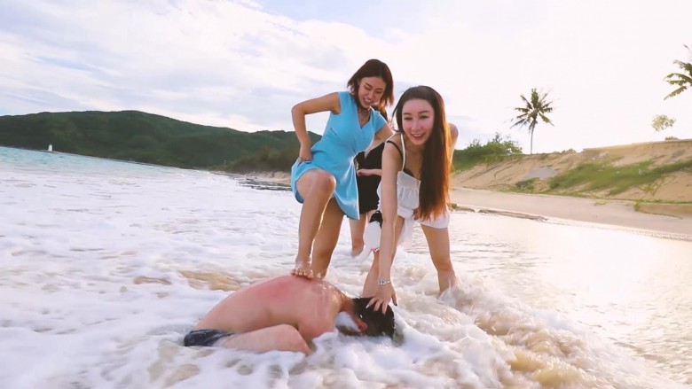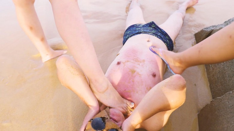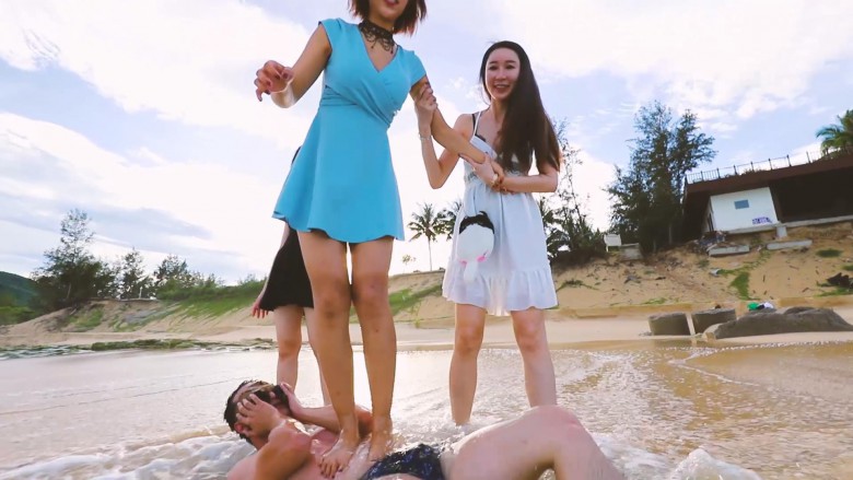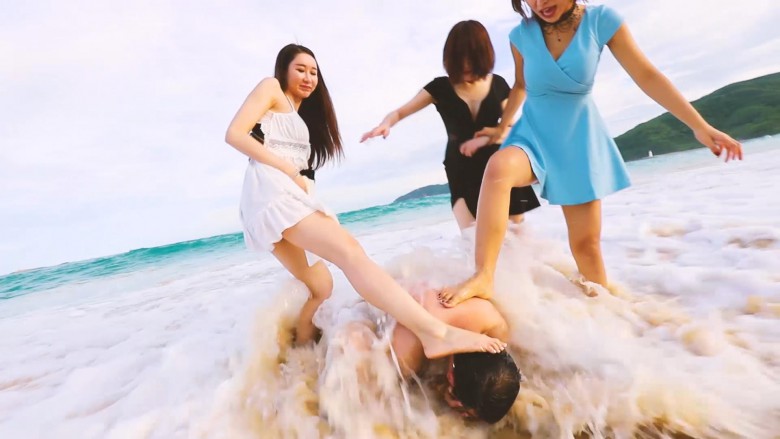 等待已久,三亚旅拍的作品终于来了。本片采用电影级调色盛夏的午后,美女沙滩,晴空万里,碧水共蓝天一色。一个奇葩的蒙面男猥琐地走了过来,他顶着大肚子,一步一步靠近,他究竟要干什么......(写不下去了)木堇和夏芙把蒙面男踩在沙滩上让他不断被海浪冲刷、没过身子;踩踏、舔脚;还喂他吃沙子、喝海水,他也真吃下去了。后面微希也加入了玩耍。