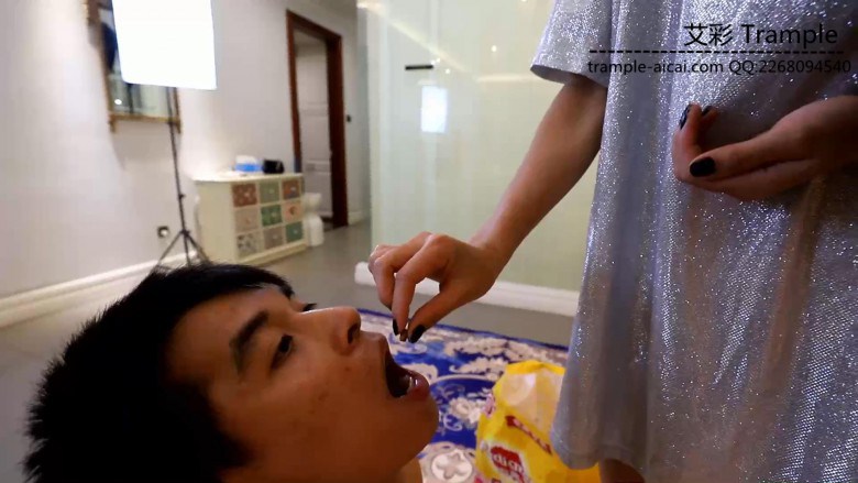 这部有点重口味哦,芷晴也是真能玩芷晴买来了新的手铐、脚铐,给狗狗戴上。先让他钻跨、玩骑马,还颇具创意的整个人躺在马背上。然后让他学狗听指令(还真挺像的),然后重点来了,吃狗粮,非常贱真的吃,芷晴还让命令把他舌头伸出来,然后把狗粮放在舌头上,再吐一口香痰,吞下去。接下来芷晴居然直接脱下了内裤,可以看到内裤上都是分泌物的污渍!!不由分说捂在了狗狗的鼻子和嘴上,强制呼吸!!然后把内裤戴在头上坐脸窒息!!还要塞到狗狗嘴里!!最后用拖鞋扇耳光。