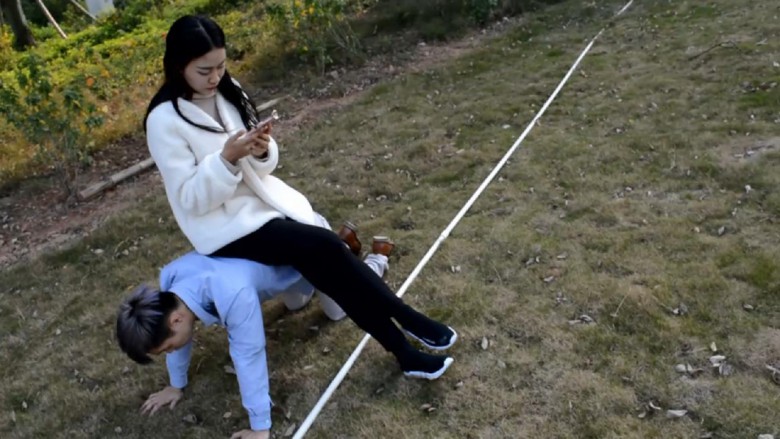 【内容简介】:夏芙和小奴在徒步运动,中途累了休息一下,趁没人的时候调教小奴命令捏肩膀,捏不好于是扇耳光;当人肉座椅;命令捏脚、舔脚,不时用脚逗弄m的脸,熏他;强迫舔脏鞋底;踩踏