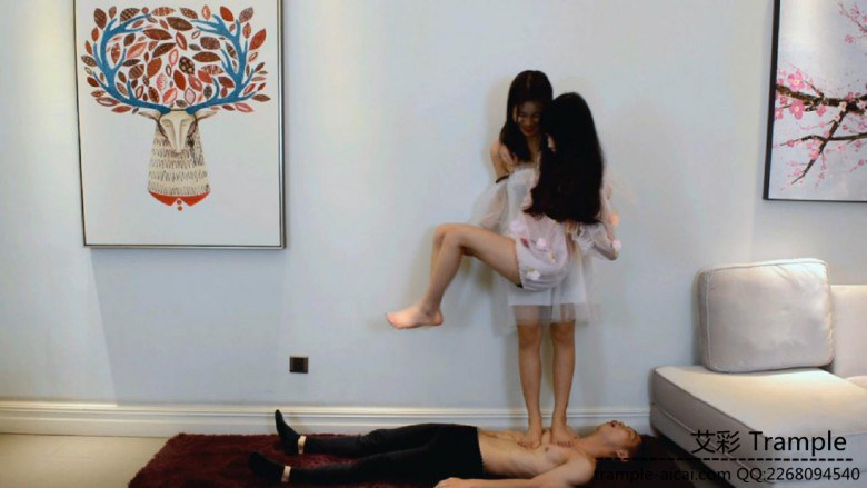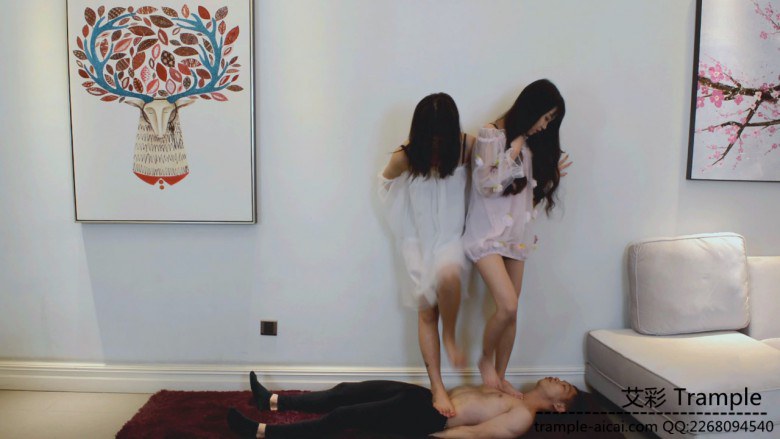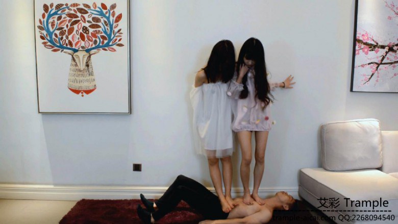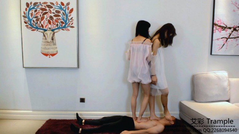 梦希、梦雅两位女神穿着性感的连衣裙,玉足全体重踩踏;四只脚捂脸、脚耳光、调教舔脚,不停的刁难;最后还用m的嘴当烟灰缸。