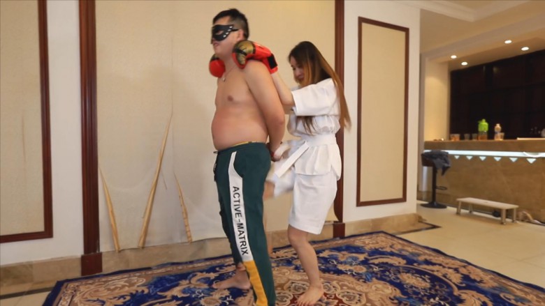 微希把人当成跆拳道练习的靶子,膝顶、拳击、踢裆等;后面让m舔玉足舌头按摩。