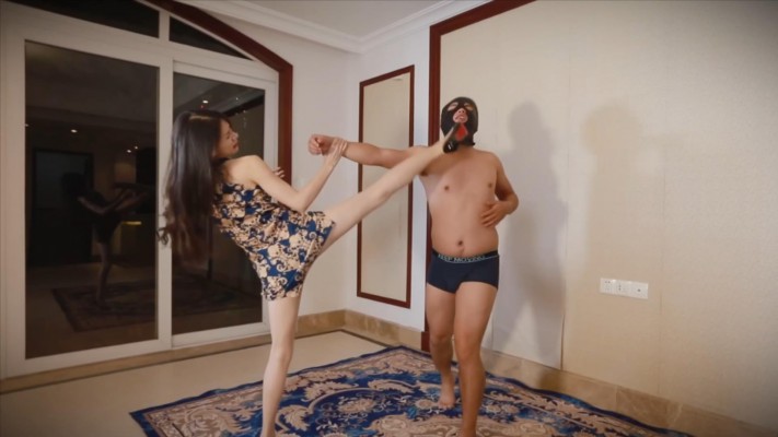 芷晴练习高踢,一男不屑地走过来嘲讽她,结果被芷晴以精湛的高踢技按在墙上摩擦。芷晴秀腿技力作