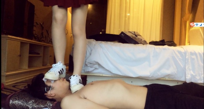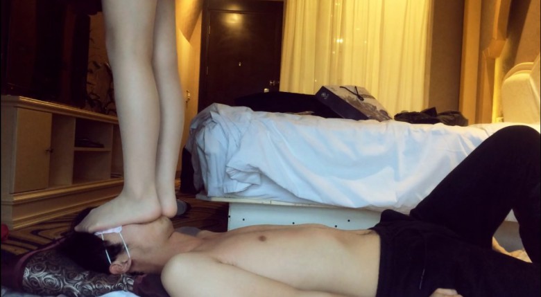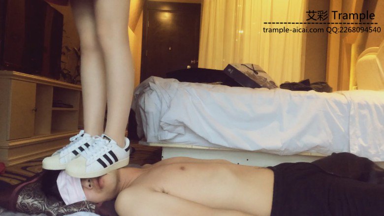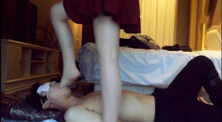 万万穿着破旧的帆布鞋在自己贱奴身上脸上肆意踩踏,完全不顾及奴的感受。这次还踩了脖子。穿鞋踩累了就脱掉用肉丝脚狠虐贱奴。贱奴兴奋地把肉丝舔得湿漉漉的。万万这次还想玩点特别的,那就是踩舌头。先是穿鞋踩,然后脱掉鞋子用脚趾碾压。可惜狗奴的舌头太短,不是很尽兴。