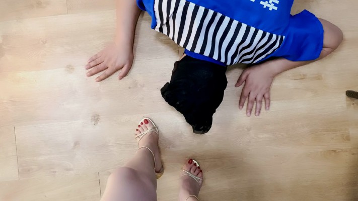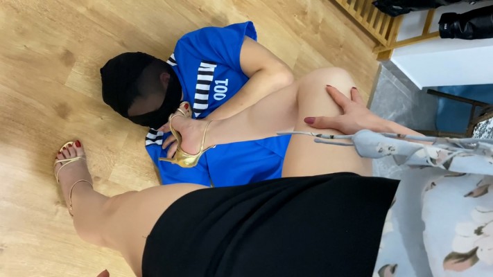 高跟光腿膝盖顶裆顶腹加关节技虐待男M
