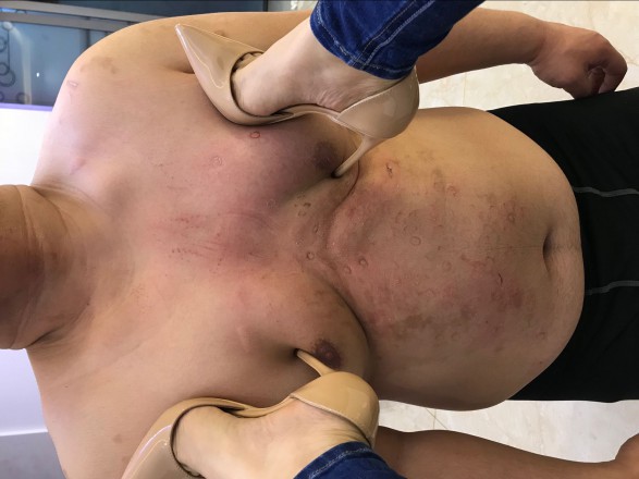 冷柔女王测试贱奴腰力决定人桥踩踏,全程高跟踩踏。每一脚踩踏都是跟跟入肉,用鞋跟残忍跺踩贱奴身体,每一脚都全力跺踩,丝毫不管贱奴的感受和惨叫。高跟鞋在贱奴身上划出血印,真的非常狠。贱奴喊坚持不住了,女王直接无视。就这样一直踩,贱奴最后实在坚持不住了,体力透支,瘫倒在地!