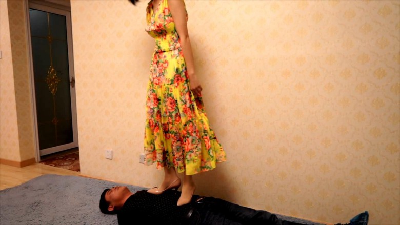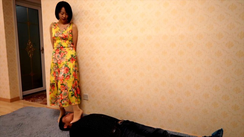 高跟鞋跺踩脖子,窒息踩踏,羞辱。