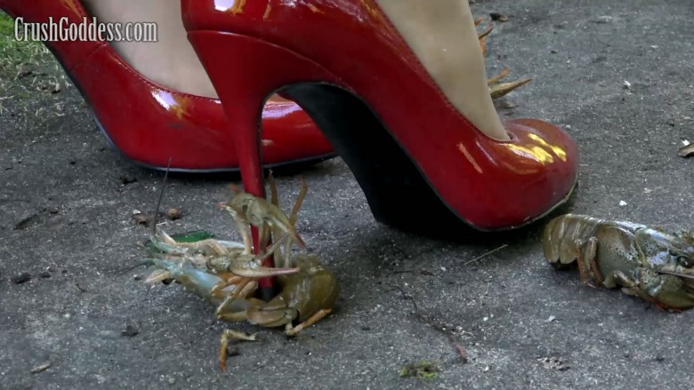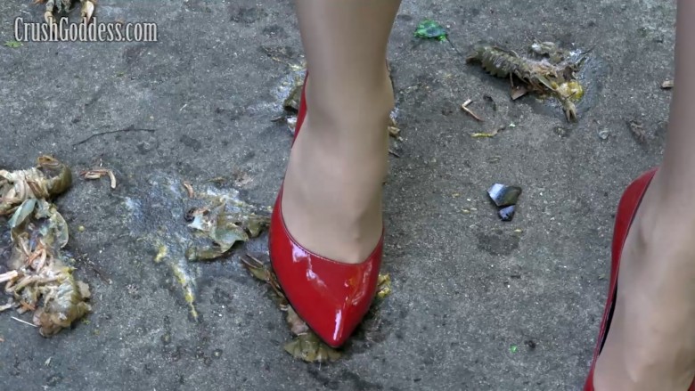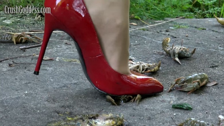 身材火辣红高丝袜女神野外踩屠一地龙虾