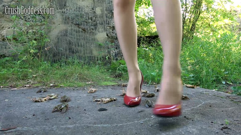 高冷女神甜美裙配高跟凉鞋碾踩爆大蜗牛