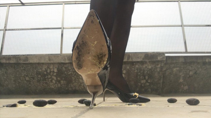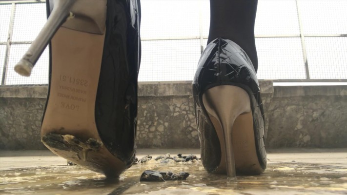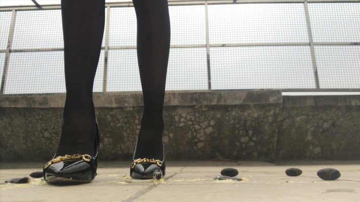 高冷女神甜美裙配高跟凉鞋碾踩爆大蜗牛