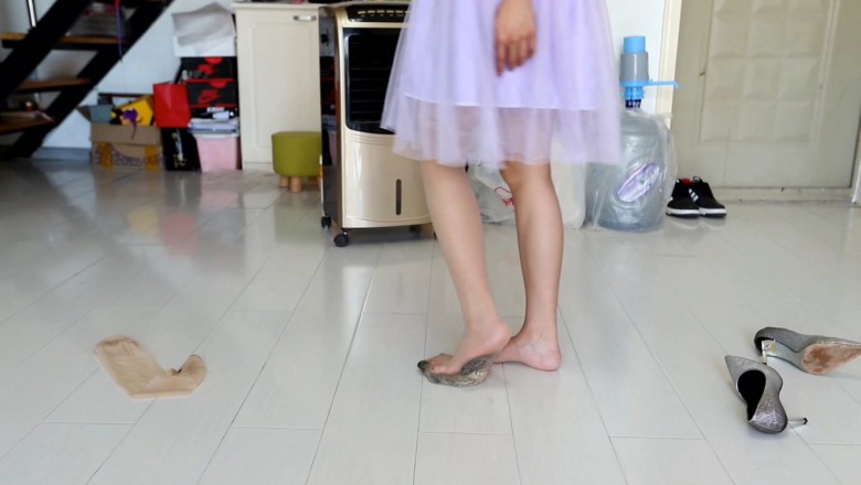 高冷女神甜美裙配高跟凉鞋碾踩爆大蜗牛