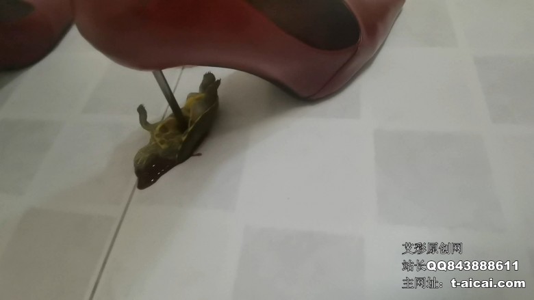 女主身穿黑衣,黑色皮短裤,腿穿超薄黑丝,脚穿红色细高跟,先用鞋跟从乌龟背部踩穿,再把乌龟翻过来踩穿腹部。当女主用鞋跟全体重踩在乌龟的腹部时,乌龟柔软的头部和肢体被一下从龟壳中挤了出来,同时迸发出深红色的血浆和内脏,女主没有丝毫怜悯,用鞋跟反复挤踩碾踩腹部和头颈部。期间还有一只鞋跟踩住一只乌龟腹部,另一只鞋跟挑起另一只乌龟在空中的精彩动作,以及双鞋跟同时踩两只等等,异常的性感残忍。