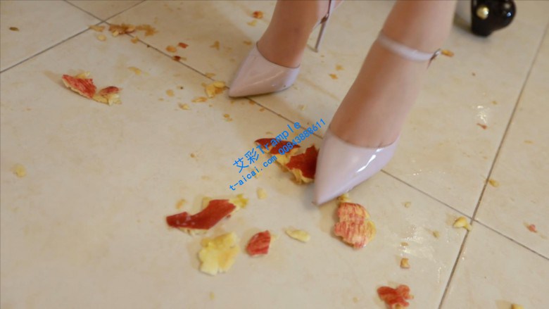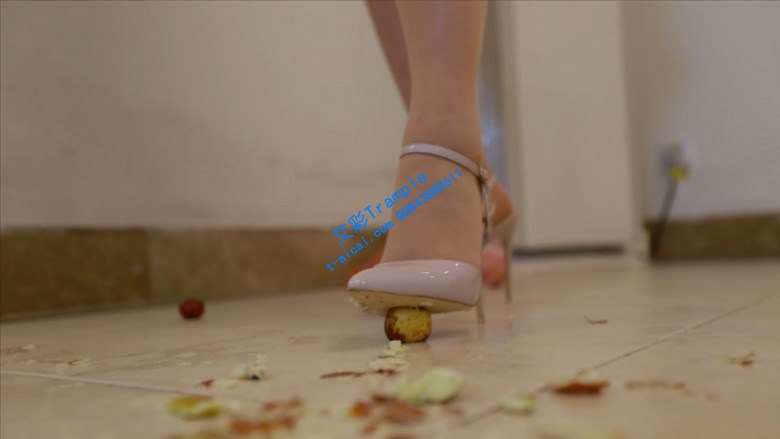 佳琦丝袜高跟踩水果:李子、枣、苹果,最后全部踩粉碎。