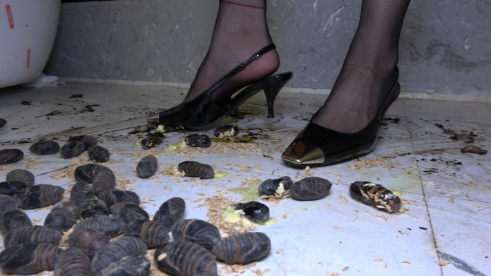 活蹦乱跳的面包虫被高跟鞋残忍踩暴,蝉蛹也是一脚下去爆浆,语言不断羞辱可怜卑微的面包虫和蝉蛹!