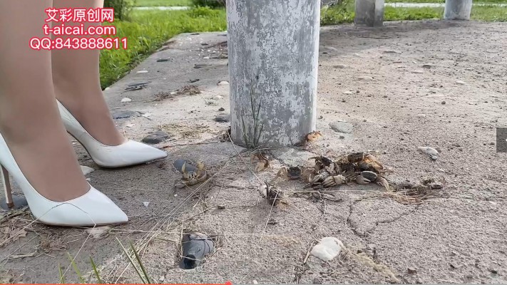 下午时分 1.75女主穿白色高跟鞋 户外踩踏小螃蟹!、