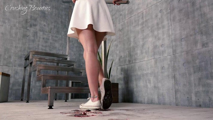 高冷女神甜美裙配高跟凉鞋碾踩爆大蜗牛