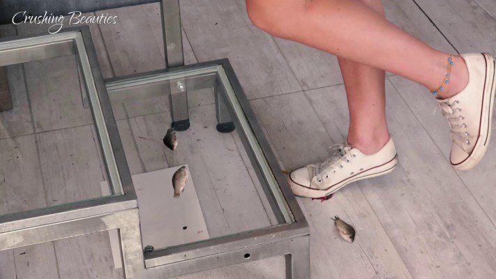 清纯系妹子Lily短裙帆布鞋踩金鱼