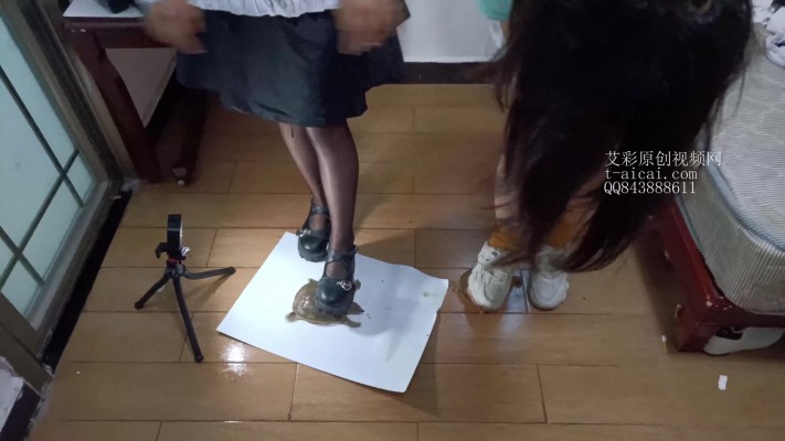 高冷女神甜美裙配高跟凉鞋碾踩爆大蜗牛