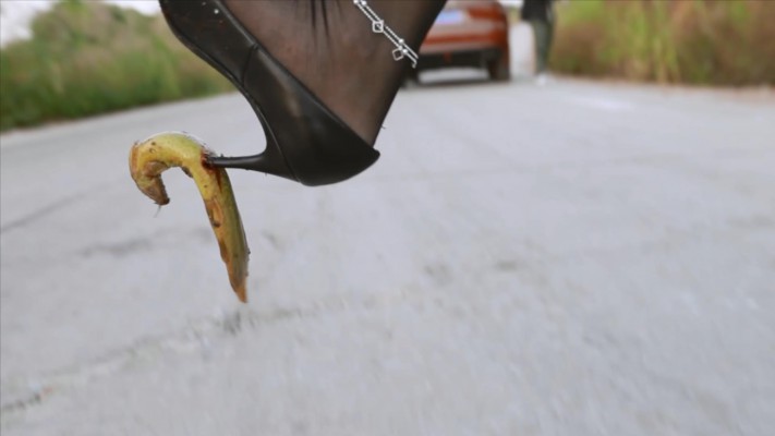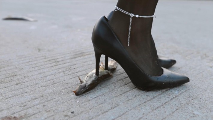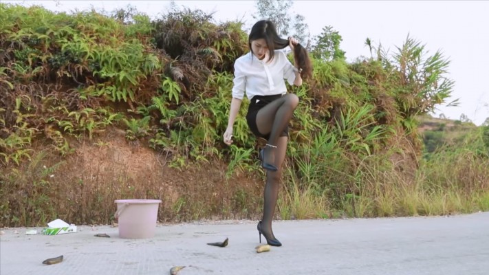 高冷女神甜美裙配高跟凉鞋碾踩爆大蜗牛