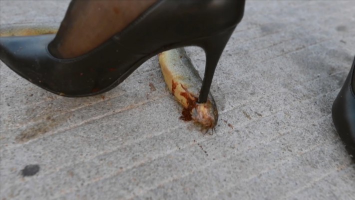 【芊芊】金鱼放鞋里踩碎蜗牛 鞋跟插鱼