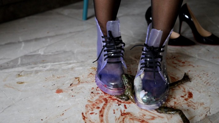 甜甜给蛤蟆三兄弟鞋跟爆菊再爆口,插的这个通透啊,估计肠穿肚烂了。然后想塞进高跟鞋里,但是蛤蟆有点肥,根本穿不上,就找来透明的靴子,一脚一个穿上。将另一只爆踩到半死。等到结尾的时候把两只鞋里的蛤蟆倒出来,这俩兄弟经过爆菊爆口刺肠,再在鞋里面做了那么久的鞋垫,已经奄奄一息了,甜甜在最后用黑丝脚给这三兄弟挨个踩出内脏