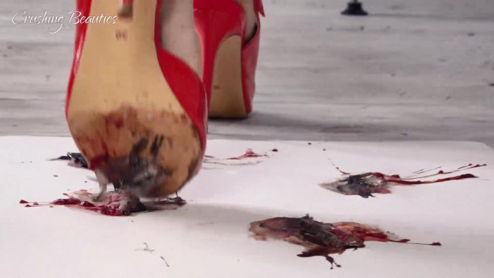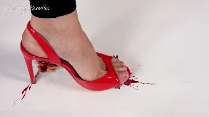 Veronica红色鱼嘴高跟走踩爆金鱼