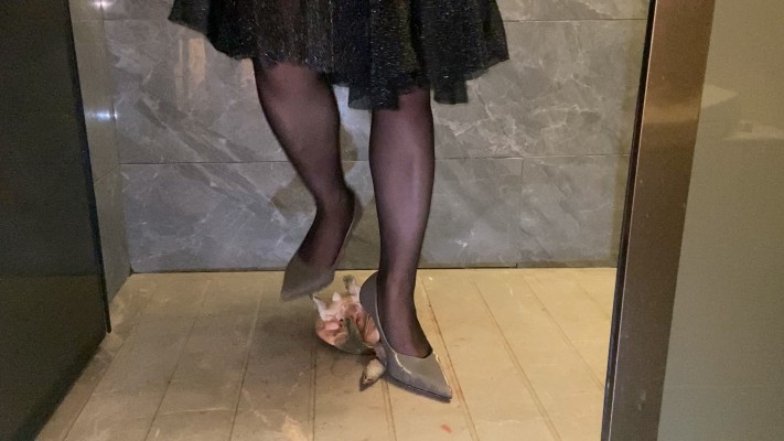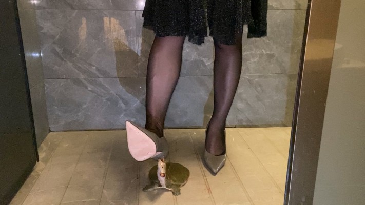 高冷女神甜美裙配高跟凉鞋碾踩爆大蜗牛