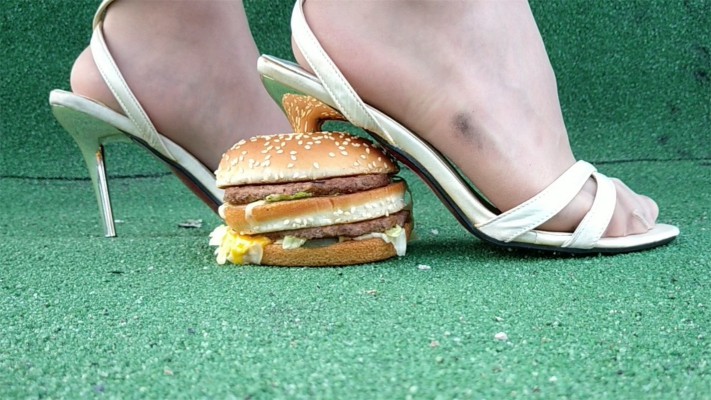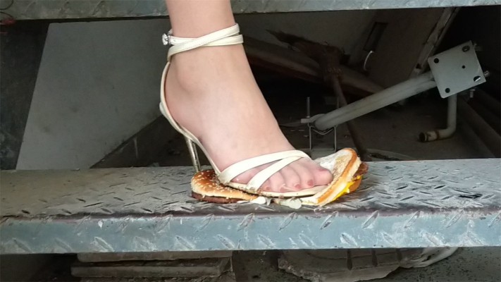 【大美暗黑萝莉主】10cm白色细高跟鞋刺穿巨无霸汉堡