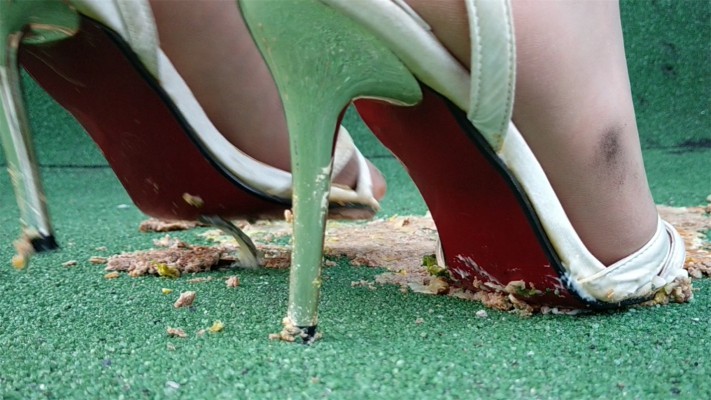 高冷女神甜美裙配高跟凉鞋碾踩爆大蜗牛