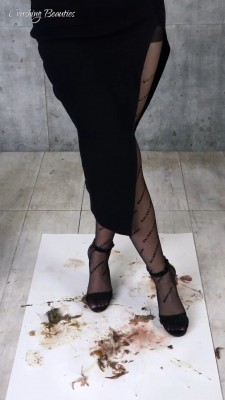 高冷女神甜美裙配高跟凉鞋碾踩爆大蜗牛
