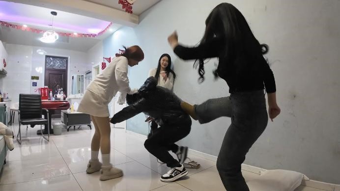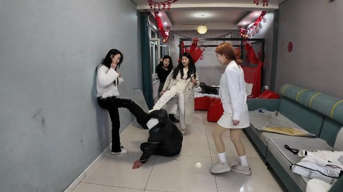 几个校园太妹找到了一个大冤种弱逼男的进行无理由群殴,拳打脚踢,暴力踢踹耳光踩踏,分分钟给你踩出淤血踹成脑震荡,全程无尿点高能超级暴力..