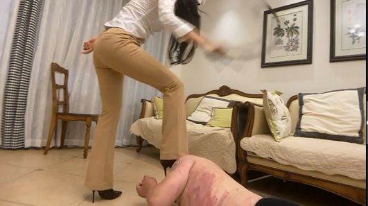 有飘水印,主人得到粉丝的举报,狗奴偷偷的在高价出售主人原味内裤,此时生气的主人双腿分开坐在椅子上手中把玩着皮鞭,随着主人鞋跟发出的声音,狗奴爬到主人脚下趴着去舔鞋尖,而此时的主人却一脚踩住他的脑袋厉声问他最近主人的内裤怎么少了几条,但狗奴脱口回答不知道,主人的内裤都是狗奴清洗打理,怎么会与他无关,今天必须老老实实交代,否则暴躁的主人会让他生不如死,狗奴矢口狡辩否认,恼火的主人抬脚就踢他脑袋和脸,接着挥着皮鞭狠抽,逼他交代,狗奴深知主人的暴脾气,如实交代后肯定会被打死,所以死扛着拒不交代,主人的脚不断踢着他