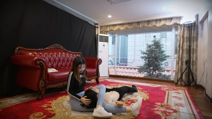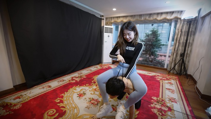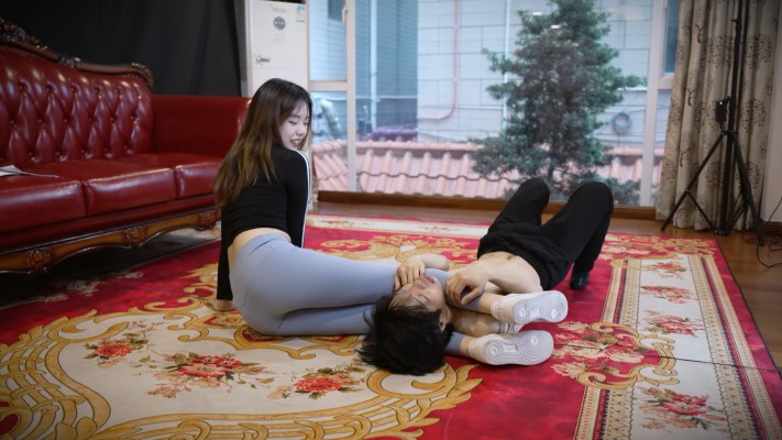 甜绘玩腿绞夹脖子,贱狗在自己腿下被随意玩弄呼吸,满脸通红,甜绘感到非常兴奋。m虚弱地倒在一边,甜绘也没有放过他,疯狂跺踹在地上的m