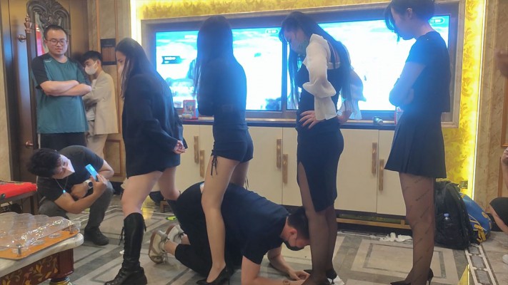 KTV圈内聚会多s群调,脚深喉,重度踢裆,坐脸,腿绞,手脚耳光,钻胯,舔鞋底,骑乘,骑脖子坐蹲起,全程高能。