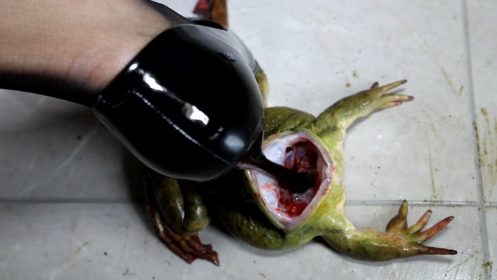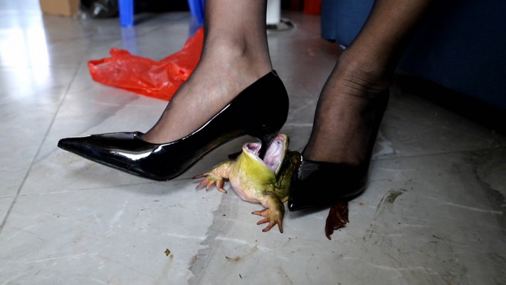 强制鞋跟深喉,刺穿身体,鞋跟穿着蛤蟆在地上散步,打滑。往蛤蟆嘴里吐痰。全程语言羞辱活活插死。再秀黑丝美脚