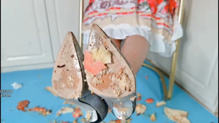 高冷女神甜美裙配高跟凉鞋碾踩爆大蜗牛