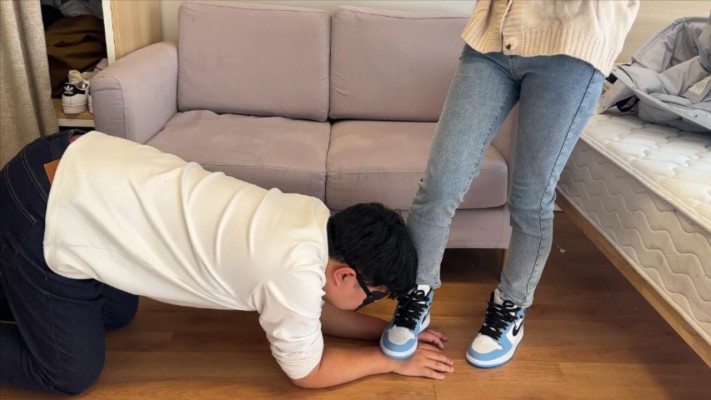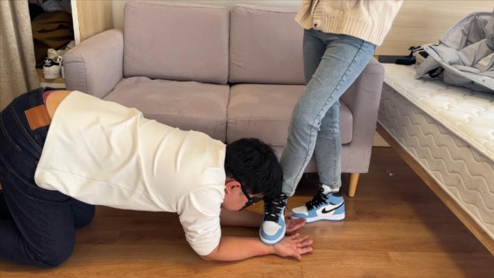 【208少女宿舍】牛仔裤AJ踩手玩毯子