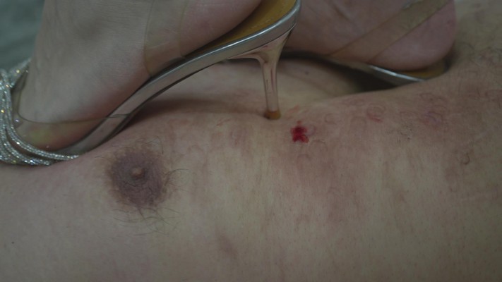 挑战我自己前面拍过的那部史诗级高跟踩踏,齐齐的这部伤口循环高跟碾踩,没有更好,只有最好,她擅长的麻木羞辱是大家最爱的一点,无时无刻不出戏地把我们代入到真实的当狗 氛围中,青春的脸庞残忍的手段也是让所有狗心甘情愿死她折磨之下,如果上头了,你就死定了。只是开头不久,锋利的高跟鞋就把M胸部撕开一大块肉,血红的伤口狰狞恐怖,肉粒都浮漏在表面清晰可见,齐齐接下来就是高跟全体重站在身上同时,再用另一只锋利的高跟无限地碾,无限地踩,无限地去划那个伤口,动态图中M绝望的表情,是恐惧,还是生无可恋?由于高跟的锋利,当每下一