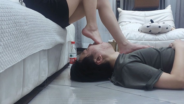 脚奴一见到宝爷的绝美容颜就忍不住犯贱跪着请求当女王脚下的人肉地毯清理足底,宝爷一边羞辱虐踩一边用脚深喉插地毯的狗嘴,脚耳光虐脸,脚底扇舌头,夹着脚奴的舌头扯来扯去,用力掐住往外揪花式虐舌,全体重踩在脚奴的脸上。