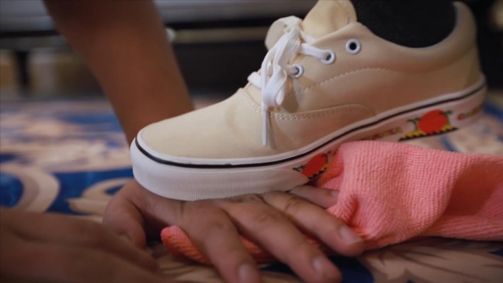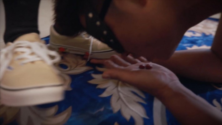 奴在擦地板,芷晴“不经意”地一脚踩到他手上,不断碾踩。然后将糖果放在奴的手上踩烂让他吃掉。 接着芷晴踹倒奴,吐口水在他脸上使劲碾