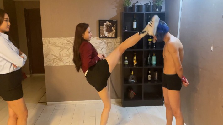 职业装白领女主汐柠搭配学生JK制服装女主洋洋,惩罚两位罪犯分别是诈骗犯和强奸犯,两位女主会如何踢击呢?请拭目以待 (汐柠大大的高位横踢真的很帅很暴力)